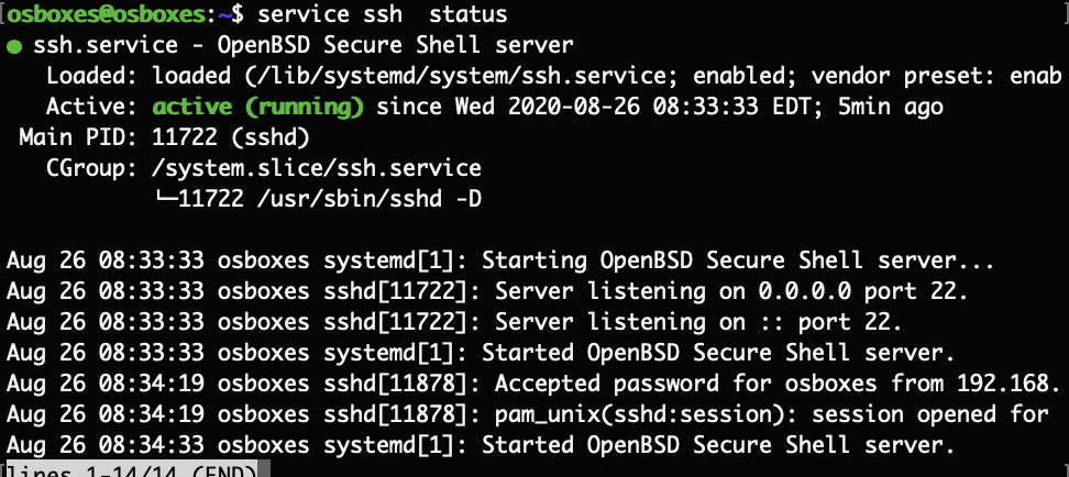 osboxes@osboxes:~$ sudo apt-get install openssh-server